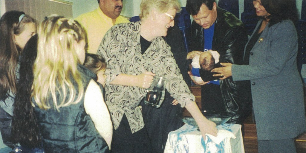 “We come together around this spring of new life to remember our own birth and welcome in love this child to share our life of faith. This water is rich with life and nourishment for the journey. It will carry you wherever you go. It will refresh you when you are weary. It brings you fruitfulness and will wash away the dimness that may sometimes surround you. In its depths you will be healed and in its shallows you will find a playful spirit… I BAPTISE YOU IN THE NAME OF THE FATHER AND OF THE SON AND OF THE HOLY SPIRIT.” Amen.