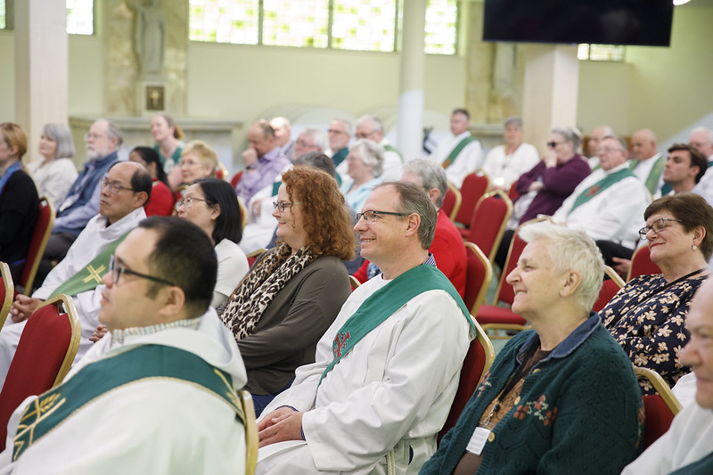 Then we heard from Robert Fitzgerald, who powerfully called deacons to fulfill their mission to the emerging Church. God is beckoning to us now from the future, and how can work to make that a reality? He especially emphasised the role of deacon to listen and to love in a way that other ministers can’t or don’t. Then, along with the universal Church, we are all to see, reflect, choose and act. Robert gave us statistics about the numbers of Catholics (1.3 billion and growing), priests, women religious, brothers and parishes without priests (over 50,000) around the world. In Australia, we have 220,000 employees in Catholic schools, healthcare and other institutions, and 11% of Catholics attend worship services regularly. The Royal Commission into Institutional Child Abuse was very clear about the major problems driving the abuse and cover-up in our Australian church: unhealthy clericalism, systemic gender inequality and authoritarian regimes. We found that incentives to do harm drove behaviours, and not values. In all of this, Robert saw the permanent diaconate as a “ministry of hope”, and deacons to be “dealers of hope”.